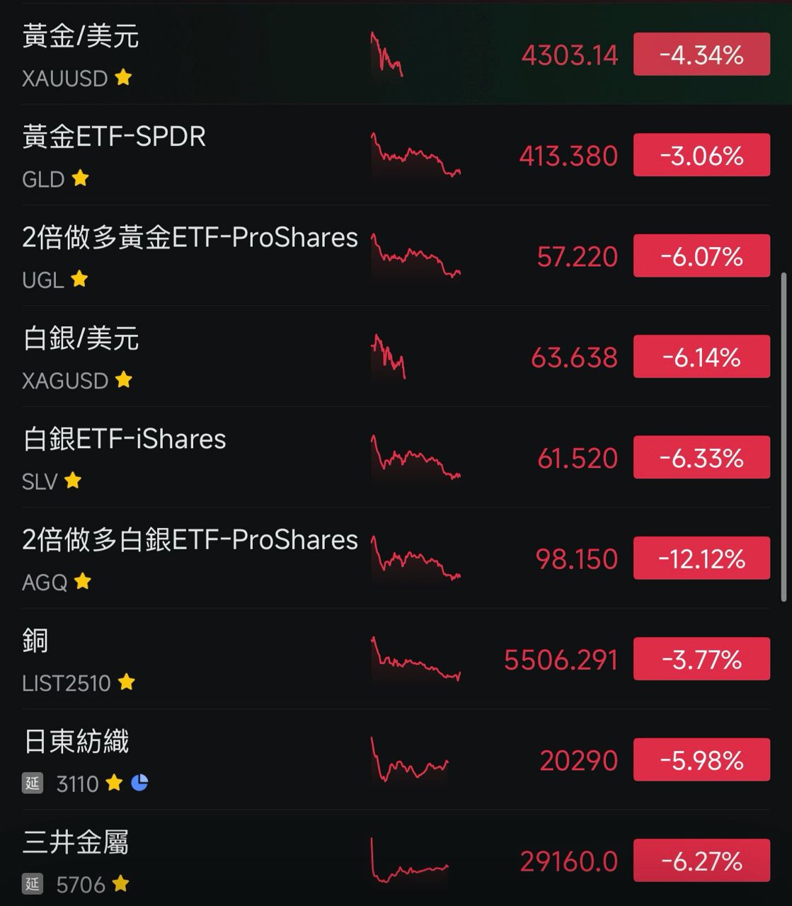 台指選 自營商 -4,363 投信 0 外資 -119