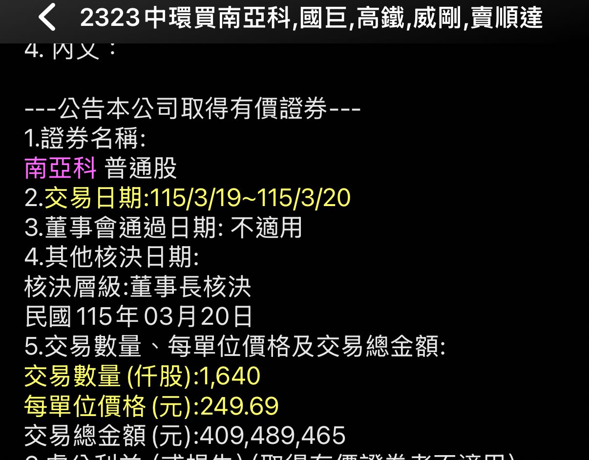 [情報]2323中環買京元電子,華通,賣南亞科,新盛力