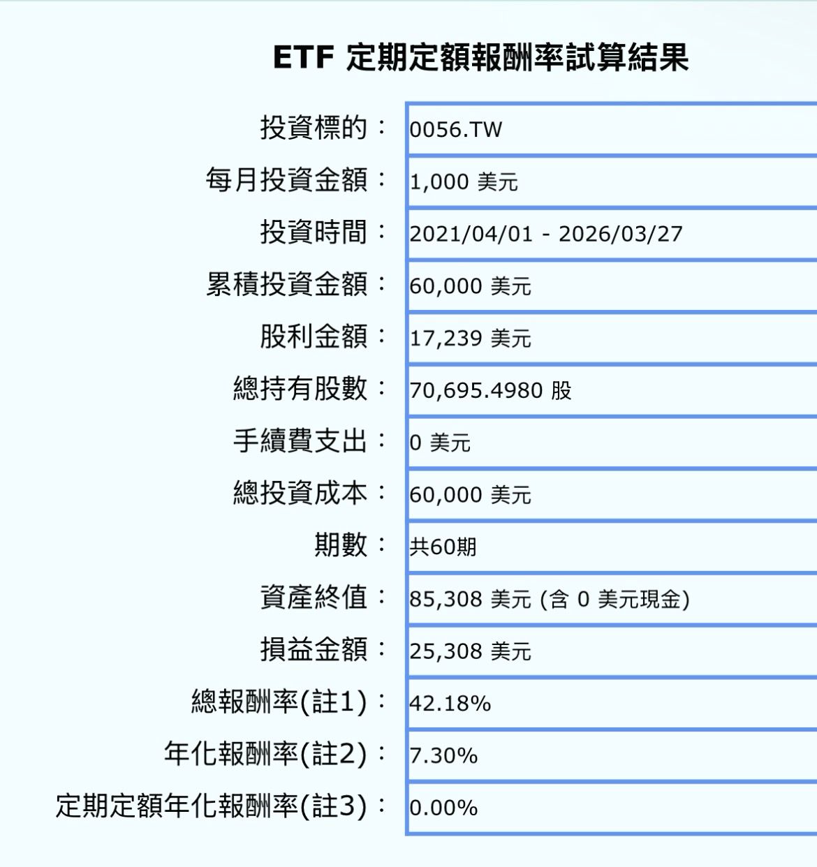 : 也就是你五年定期定額,年化報酬約6%。