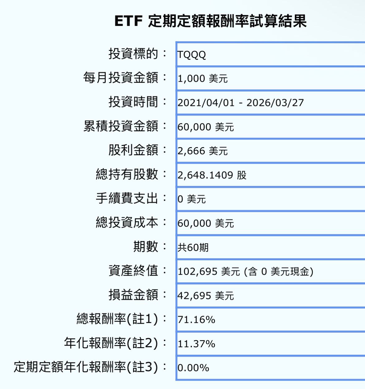 Re: [心得] TQQQ這五年定期定額,績效輸0056