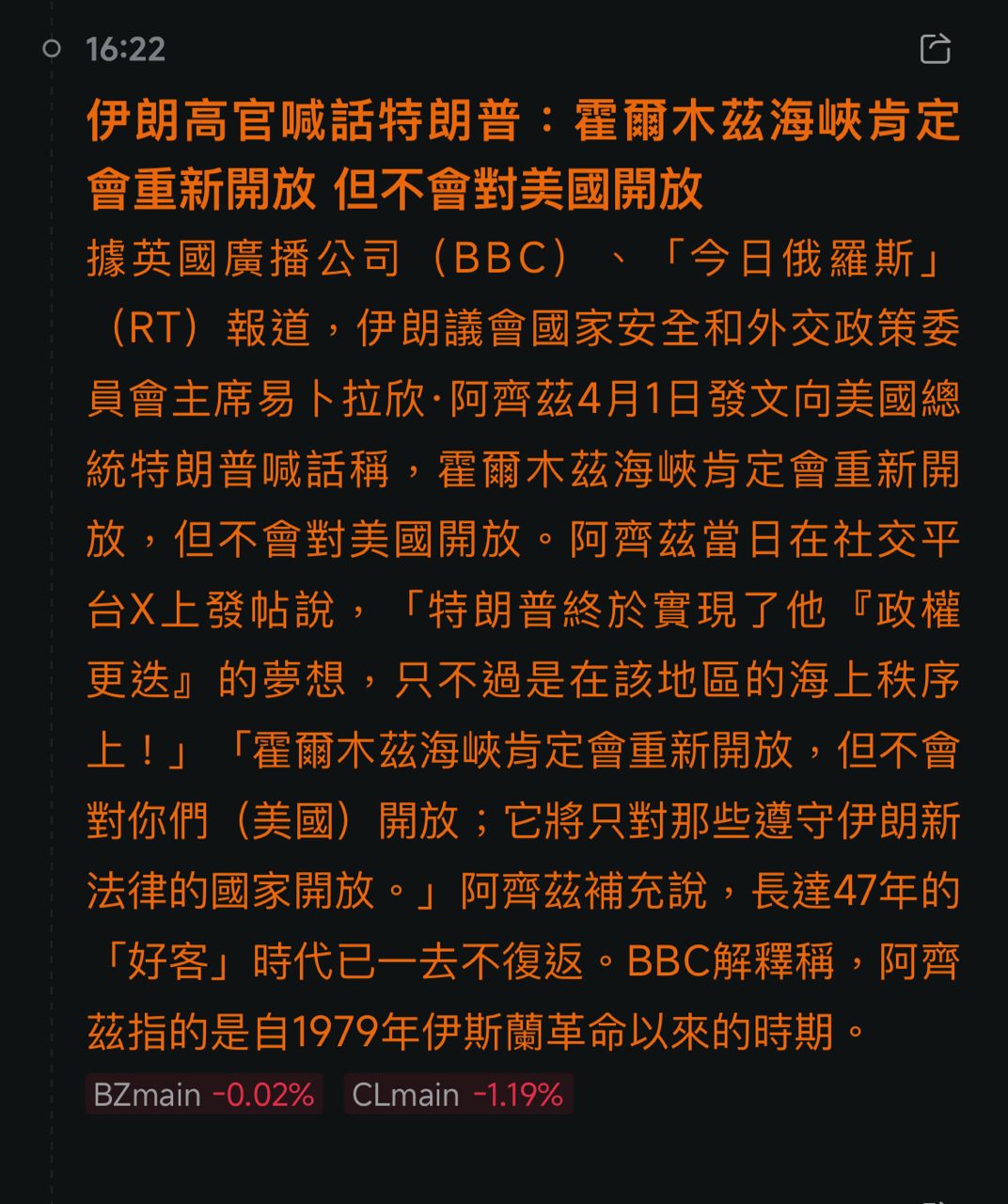 Re: [新聞] 伊朗:霍尔木茲海峽不會開放,沒有舉行過任何談判
