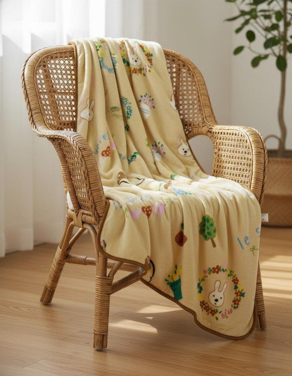 角色元素,整體設計偏向居家生活風格;材質選用法蘭絨,具備輕量、保暖與親膚特性,