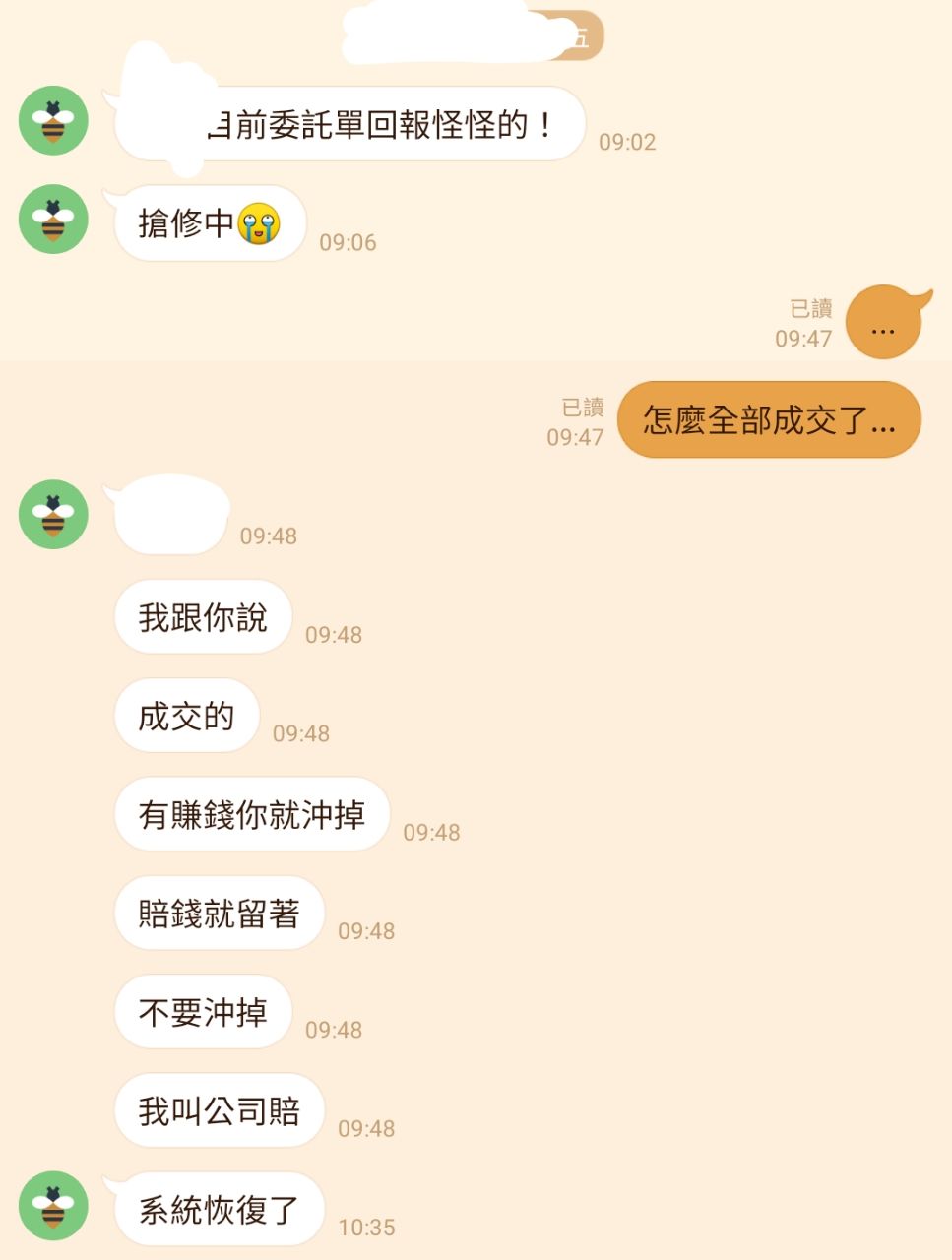 : : 想對沖掉幾檔, 但app一直顯示錯誤, 三竹和woojii都一樣, 營業員電話打了一個