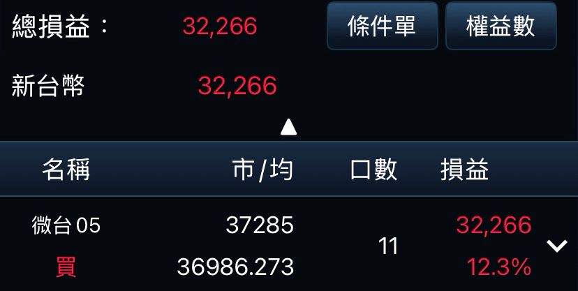 : : 下跌的時候買個1-2口,這個月累積買到11口微台
