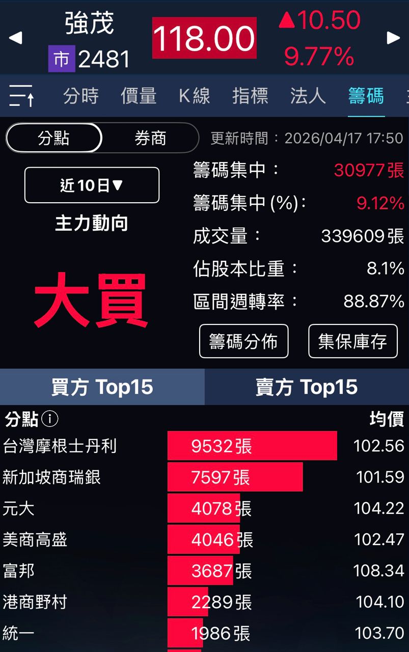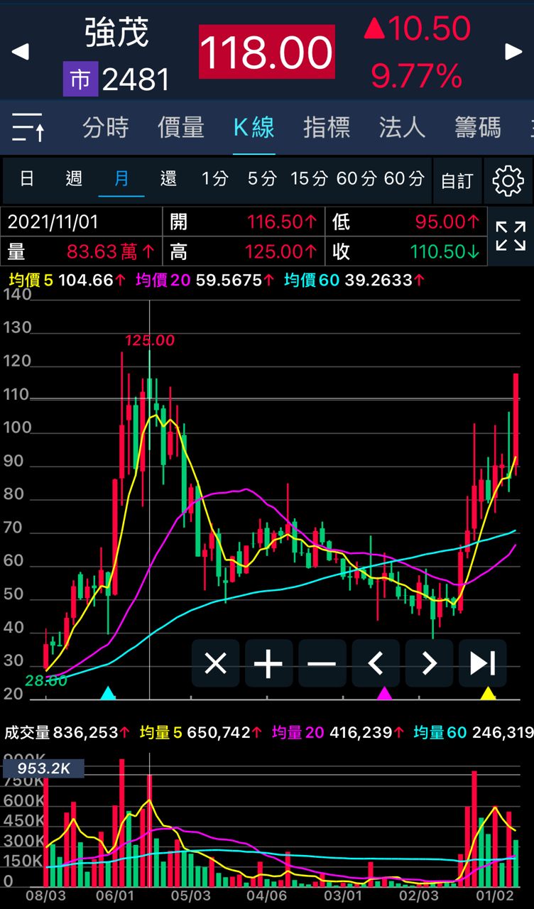股價來到 118,接下來要面對的,是 2021 年前高約 125 元 這個關鍵區。