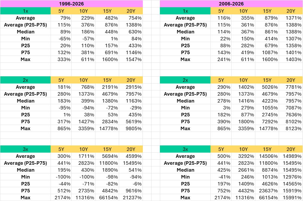 1. 如果歷經2000年科技泡沫那段,三倍的中位數以下表現跟兩倍差異不大,且三倍25分