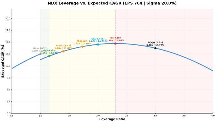 納指不同槓桿預期報酬在當前資金成本如下: