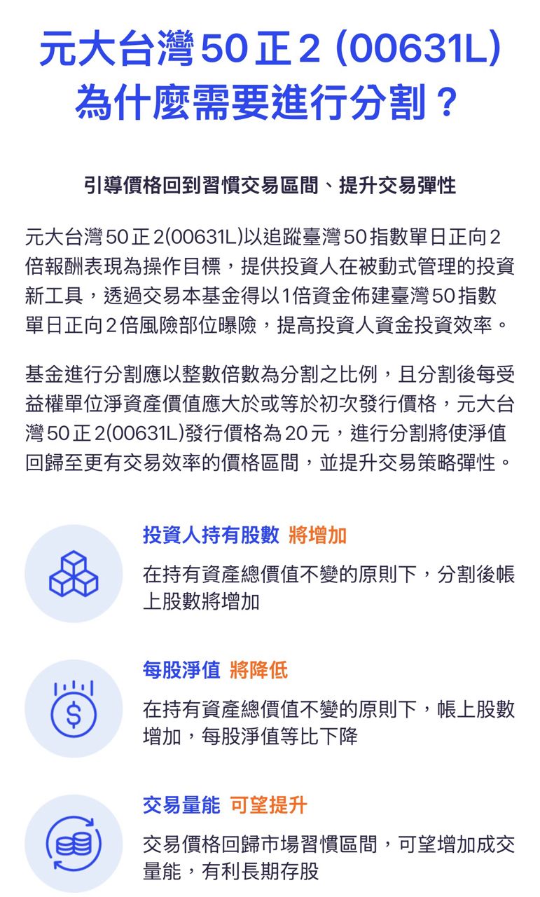 1.00631L元大台灣50正二,以下擷取自元大投信的網站
