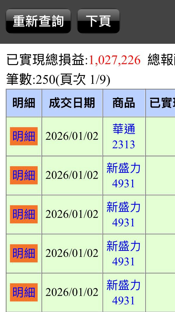 目前從2026/1到現在大概已實現100出頭
