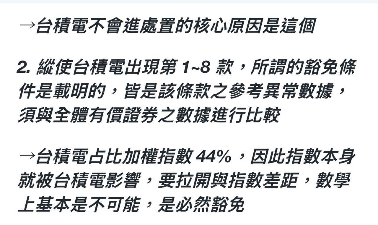 - 部分ETF會因為害怕輸給大盤而爭相納入台積電