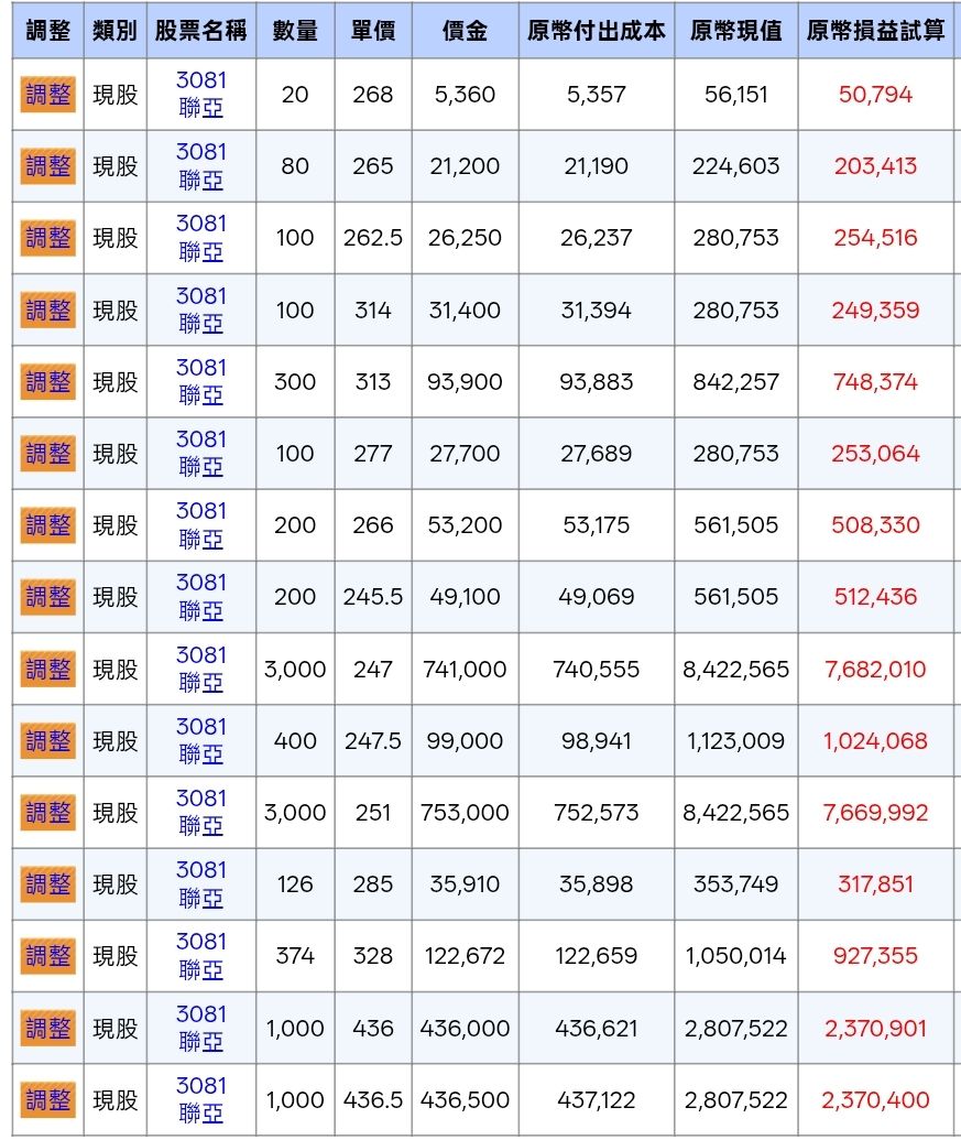2025年6-8月陸續買進10張聯亞