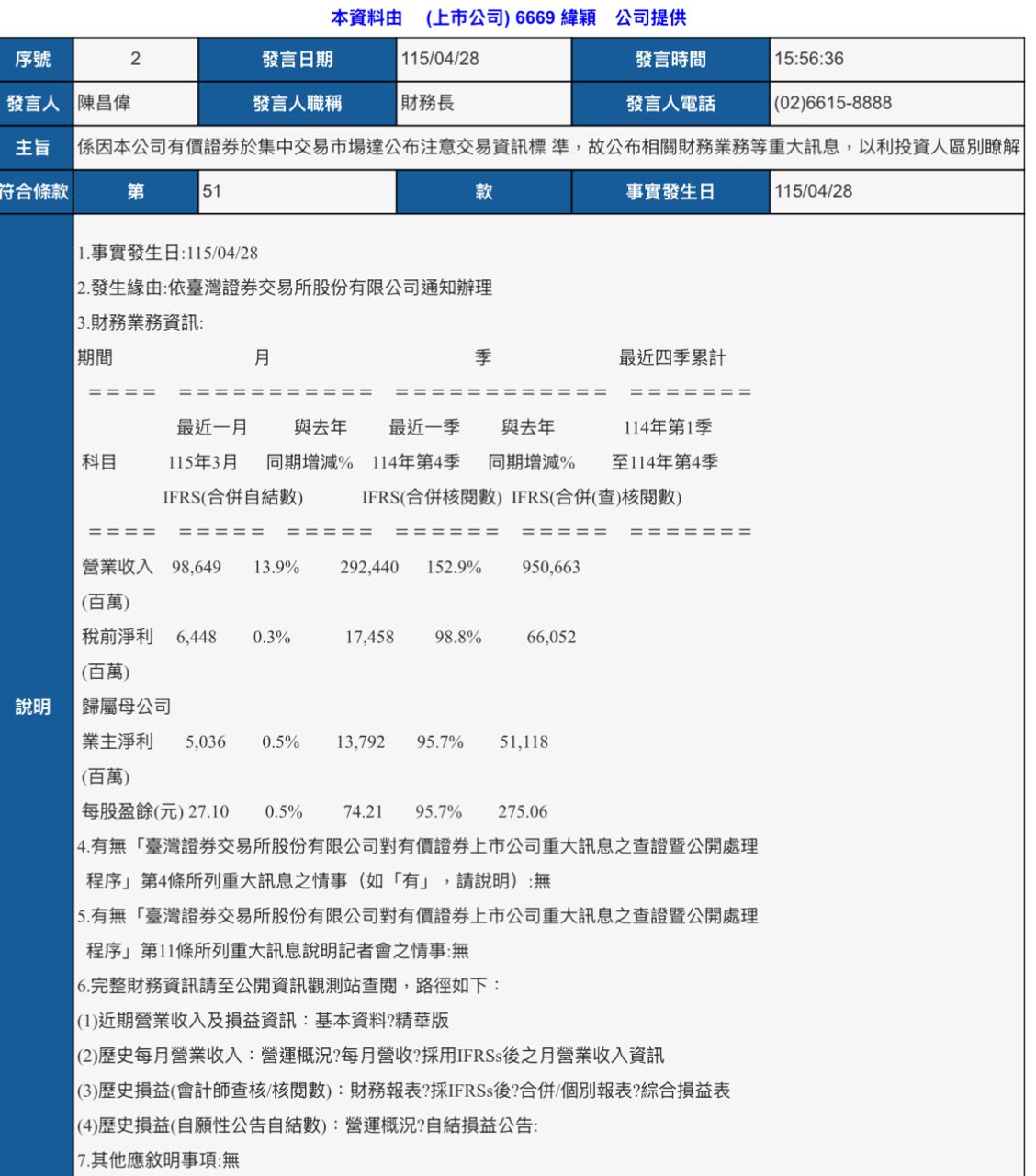 [情報] 6669 緯穎 115年3月自結EPS 27.1