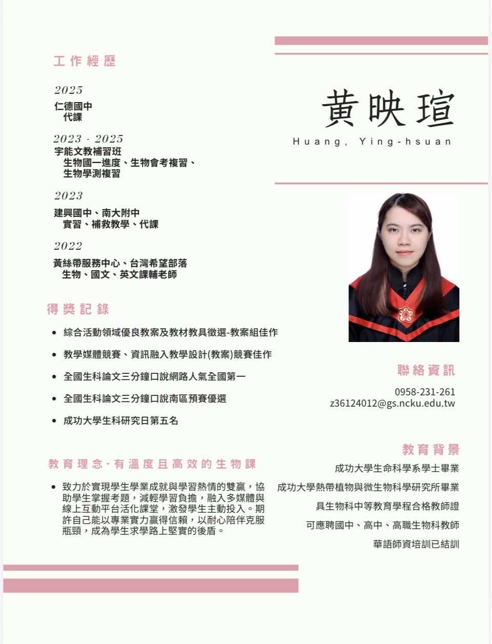 年輕有勁的映瑄老師從成大畢業