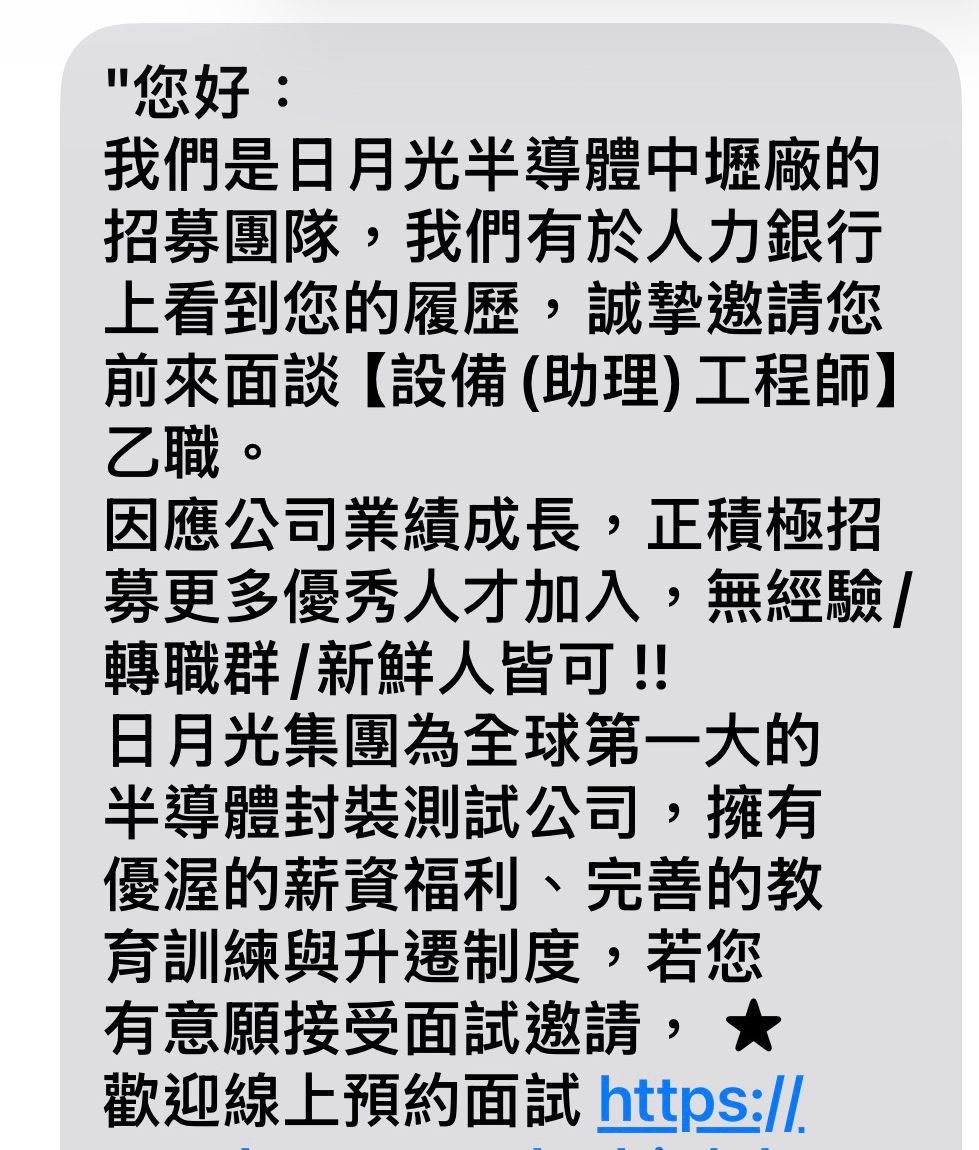 [心得] 日月光中壢廠-設備(助理)工程師