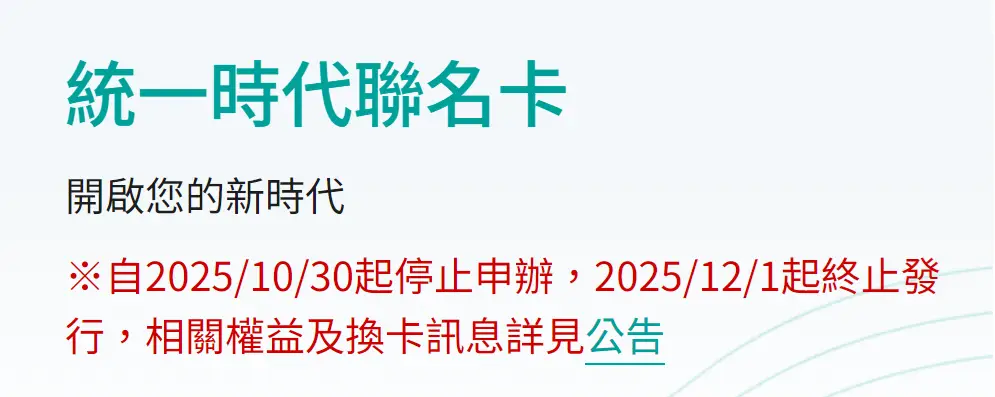 因為已改為明天(10/30)開始停止申辦統一時代聯名卡喔~