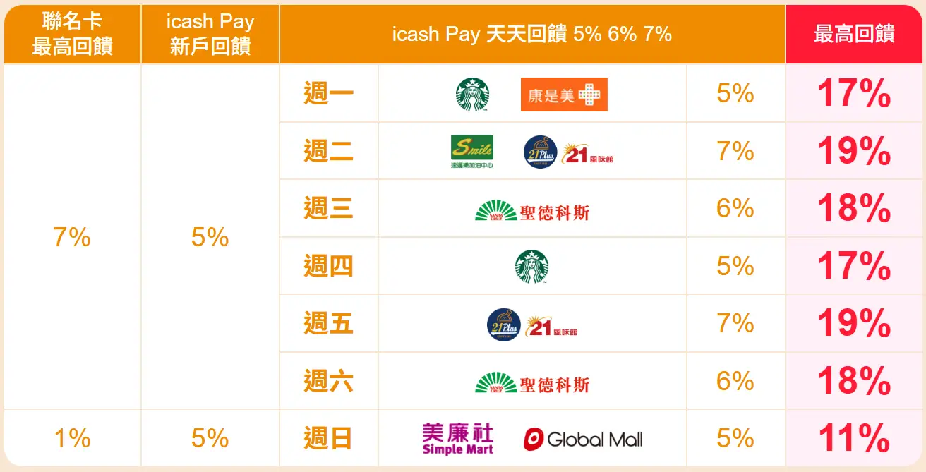 綁定icash Pay適用uniopen聯名卡踩點任務最高回饋7%。