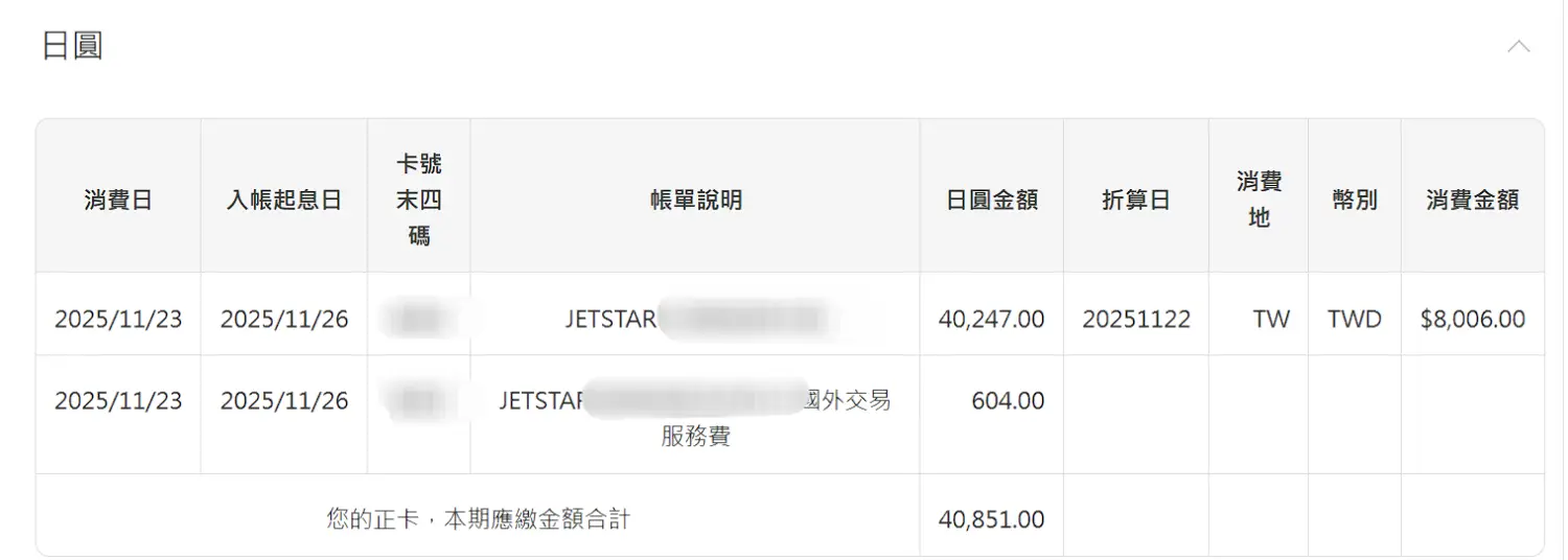 : 我心想不會吧,點進日幣帳單才發現他真的出現在那