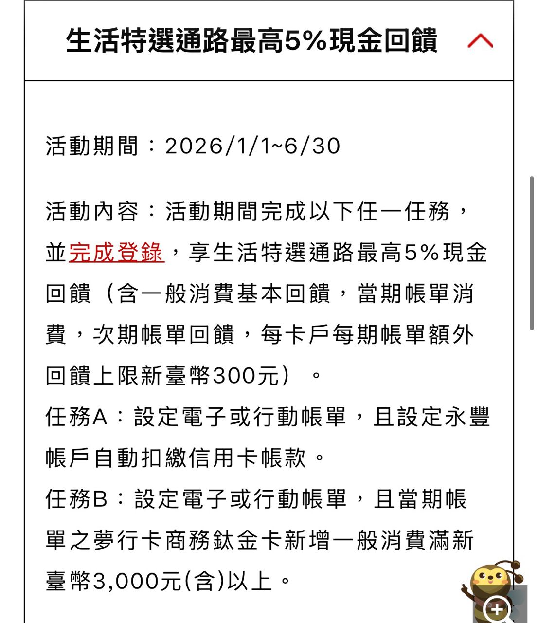 [情報] 2026上半年 永豐夢行卡維持+3%