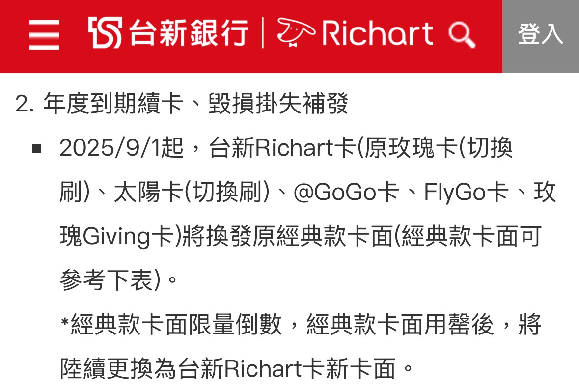 看了說明RICHART的說明,其實蠻想換新的RICHART卡的XD