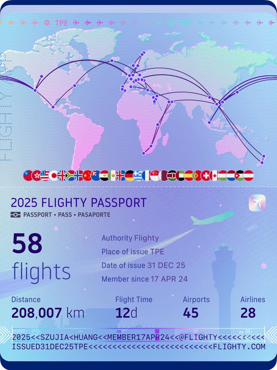 因為今年在執行環遊世界計畫,大部分時間在海外,總共坐了58趟飛機,去了25個國家
