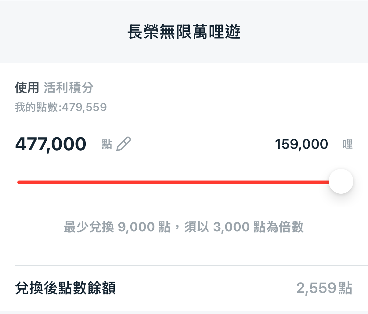 換哩程是3000點為一單位,因為我還有別的卡,以為剩下2500點會留著,
