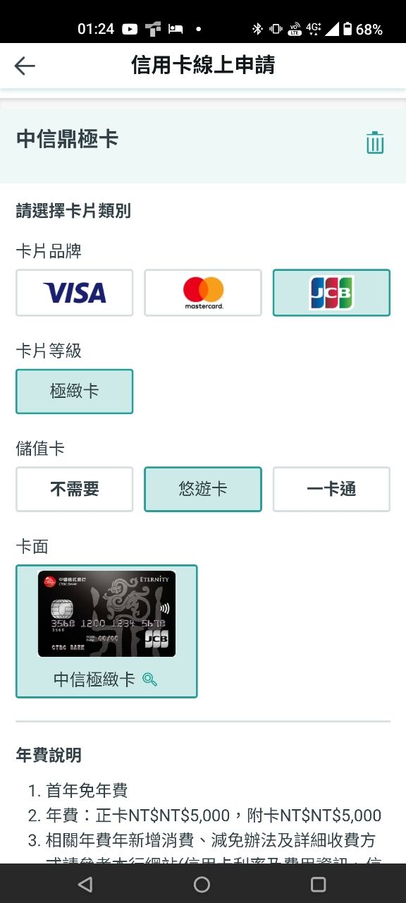 就是中信鼎極卡 去年的話好像要年費 今年放寬首年免年費了