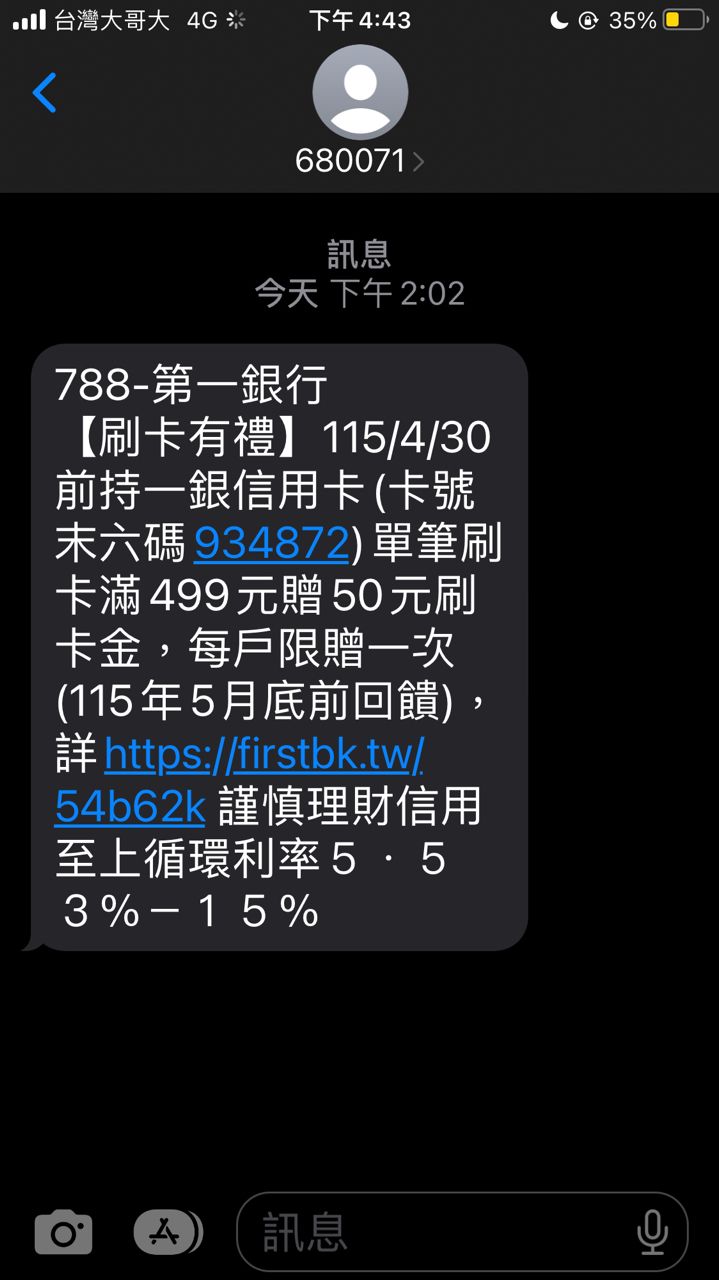 [情報] 一銀499元贈50元刷卡金(分眾)