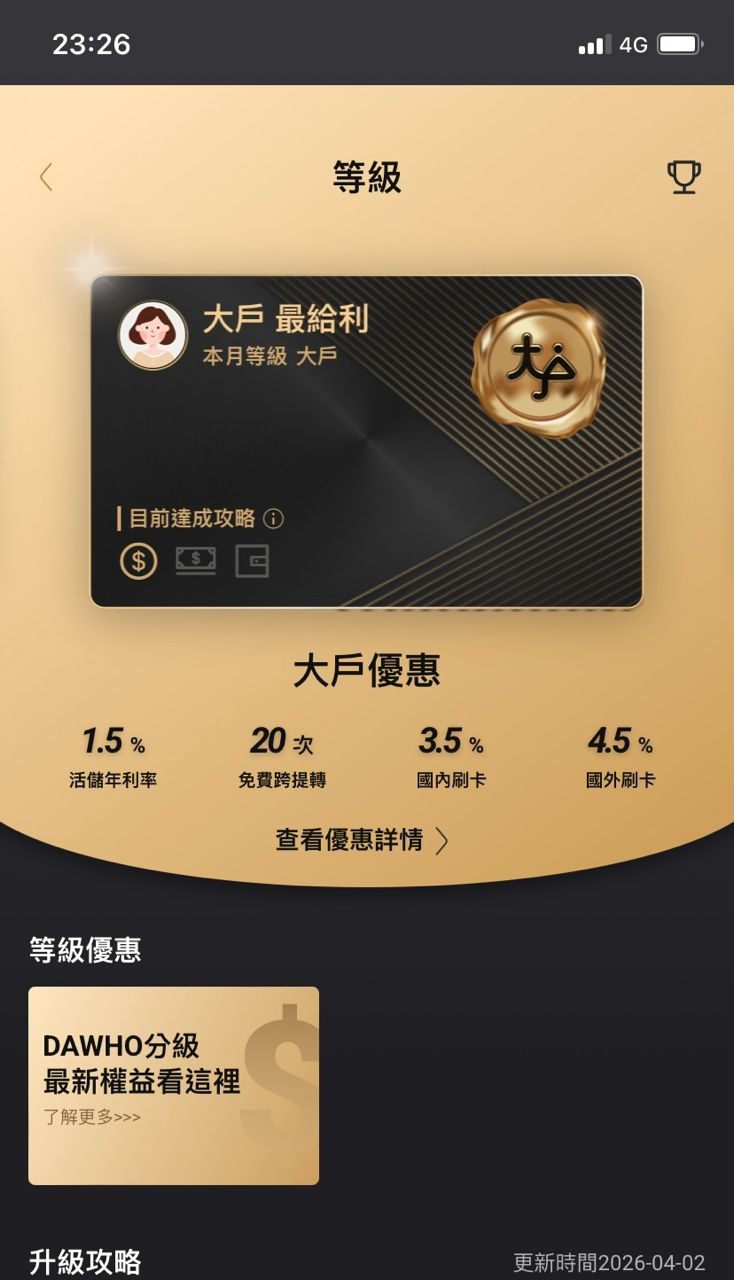 : : 標題: [討論] DAWHO等級轉換期間消費回饋計算
