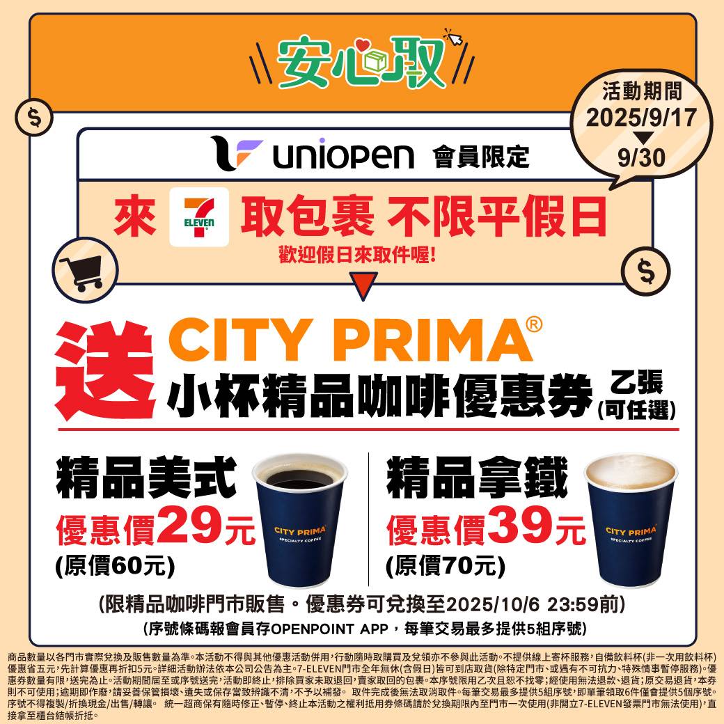 7-11小杯精品咖啡優惠券 1張1元op或200點 有5張~10/6