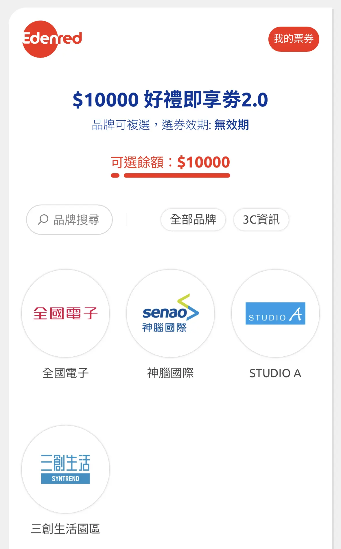 其他說明: 可兌換全國電子/神腦國際/STUDIO A/三創生活等值1萬禮卷