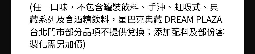 星巴克中杯飲料兌換券*1