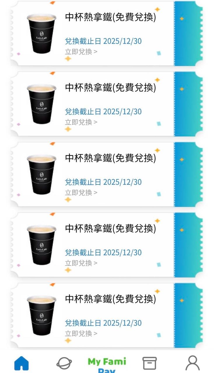 全家中杯 五杯熱拿鐵(期限至 12/30)