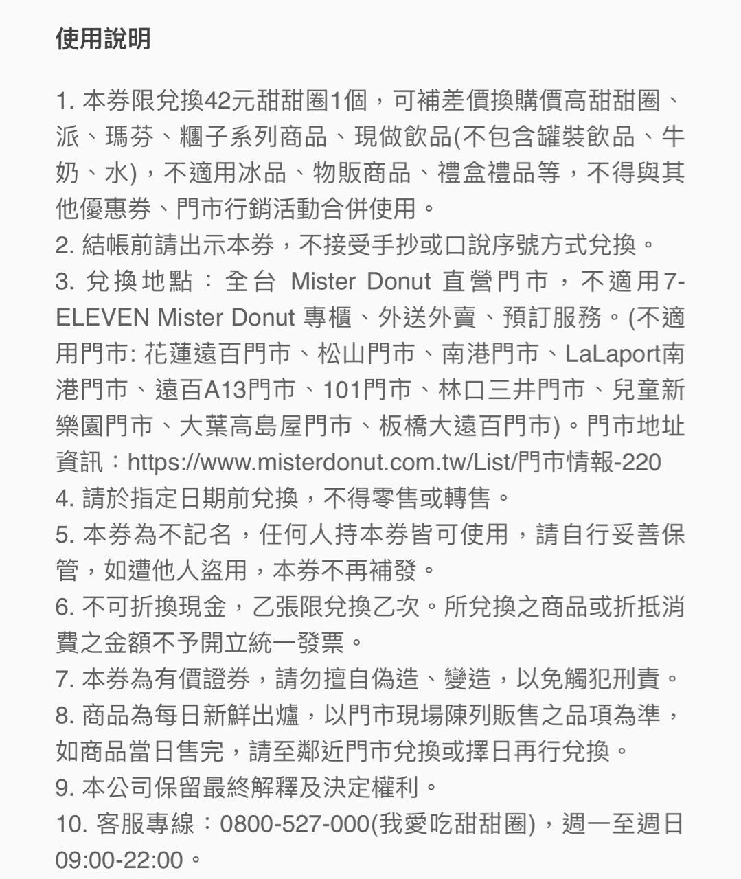 本券限兌換42元甜甜圈1個,可補差價換購價高甜甜圈