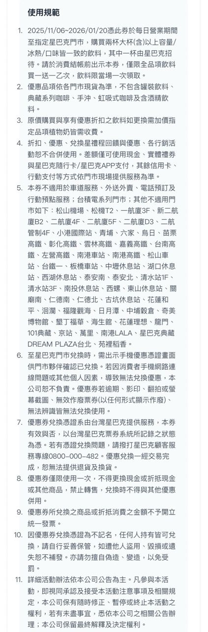 商品名稱:星巴克好友分享券*6(2026/01/20)