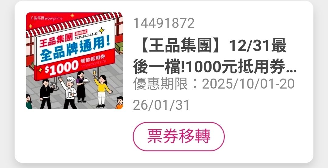 ※ 文章網址: https://www.ptt.cc/bbs/e-coupon/M.1768725581.A.299.html