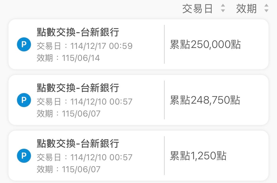 新舊狀況:如下圖,無三個月內到期之點數
