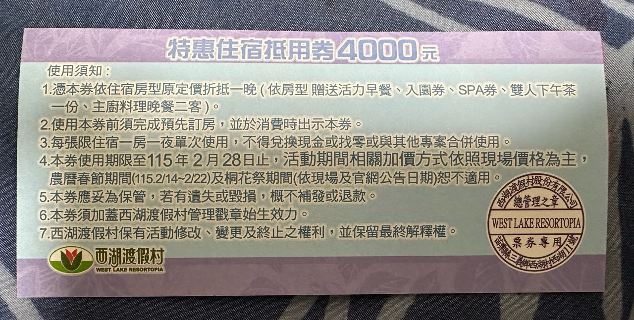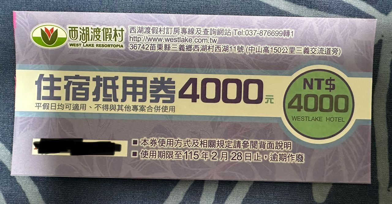 [交易] 苗栗西湖渡假村 住宿抵用券