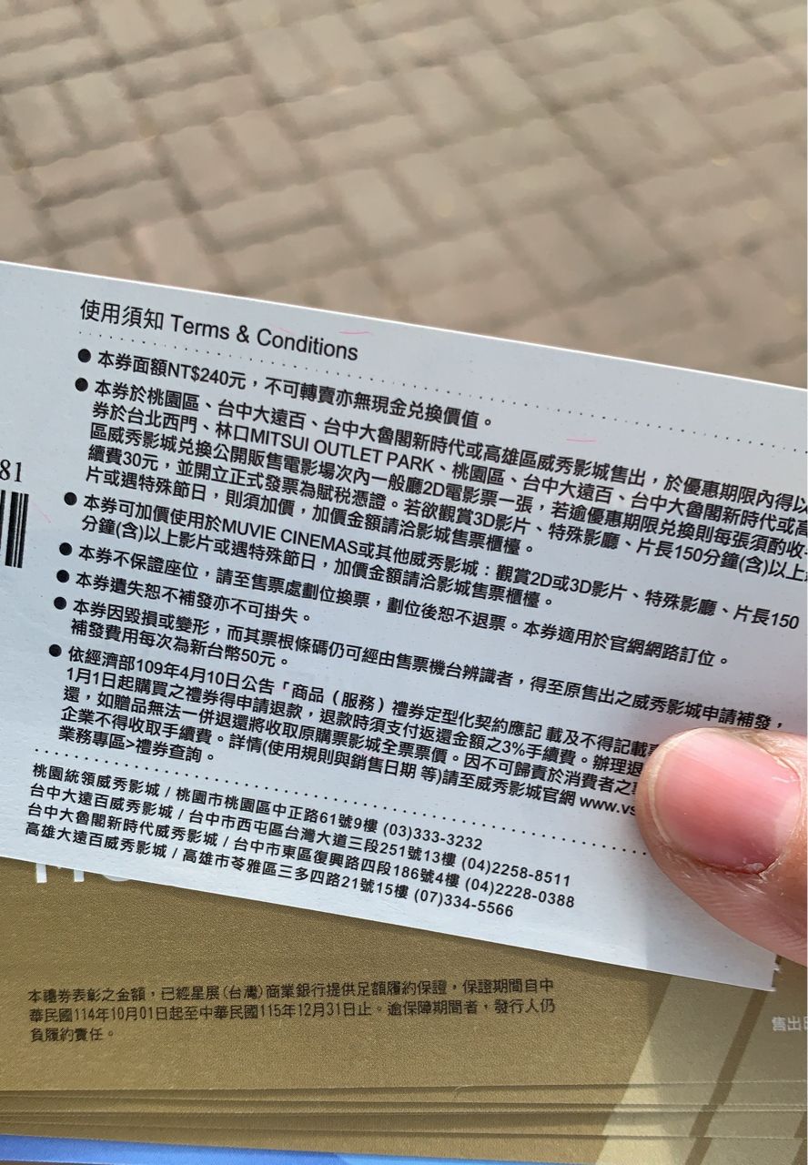 [交易] 秀泰電影票 /威秀電影票(面額240元)