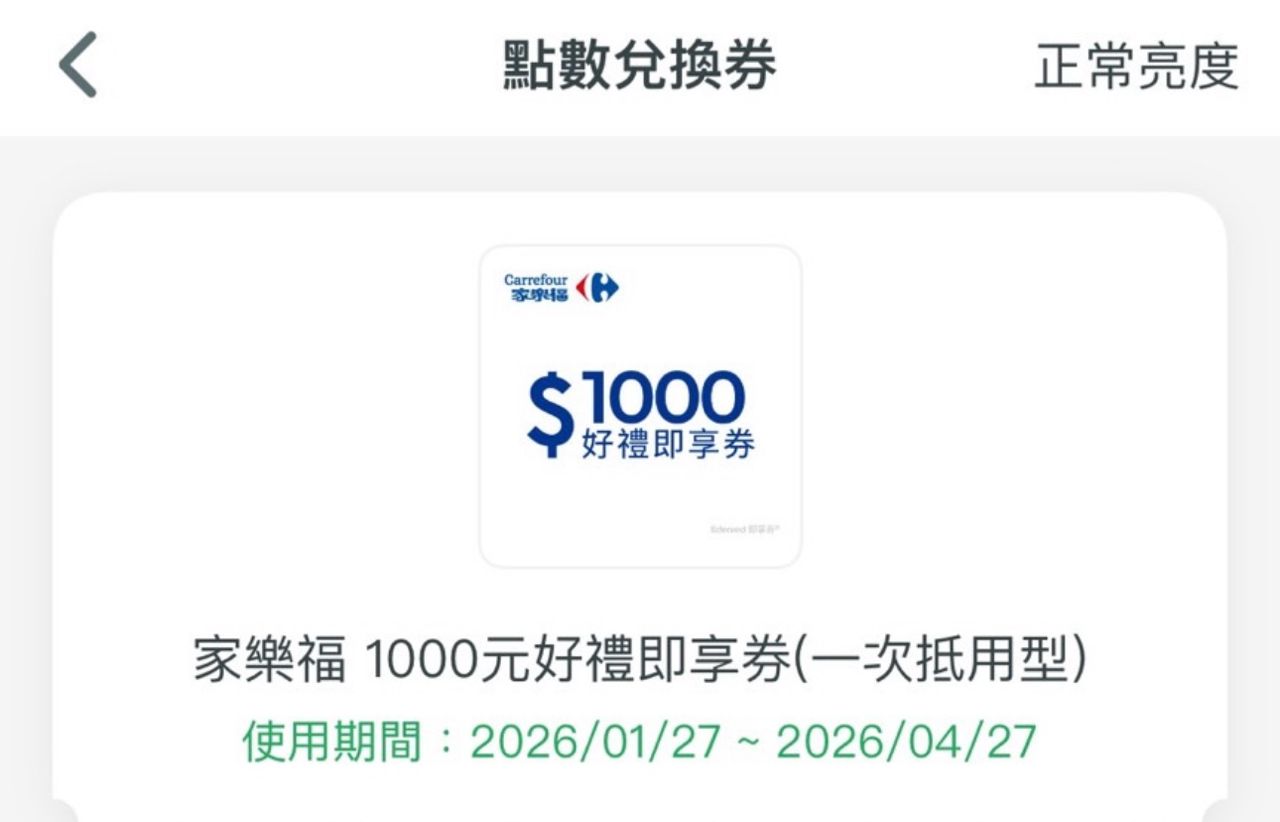 (1)家樂福即享券(一次性抵用) 面額$1000