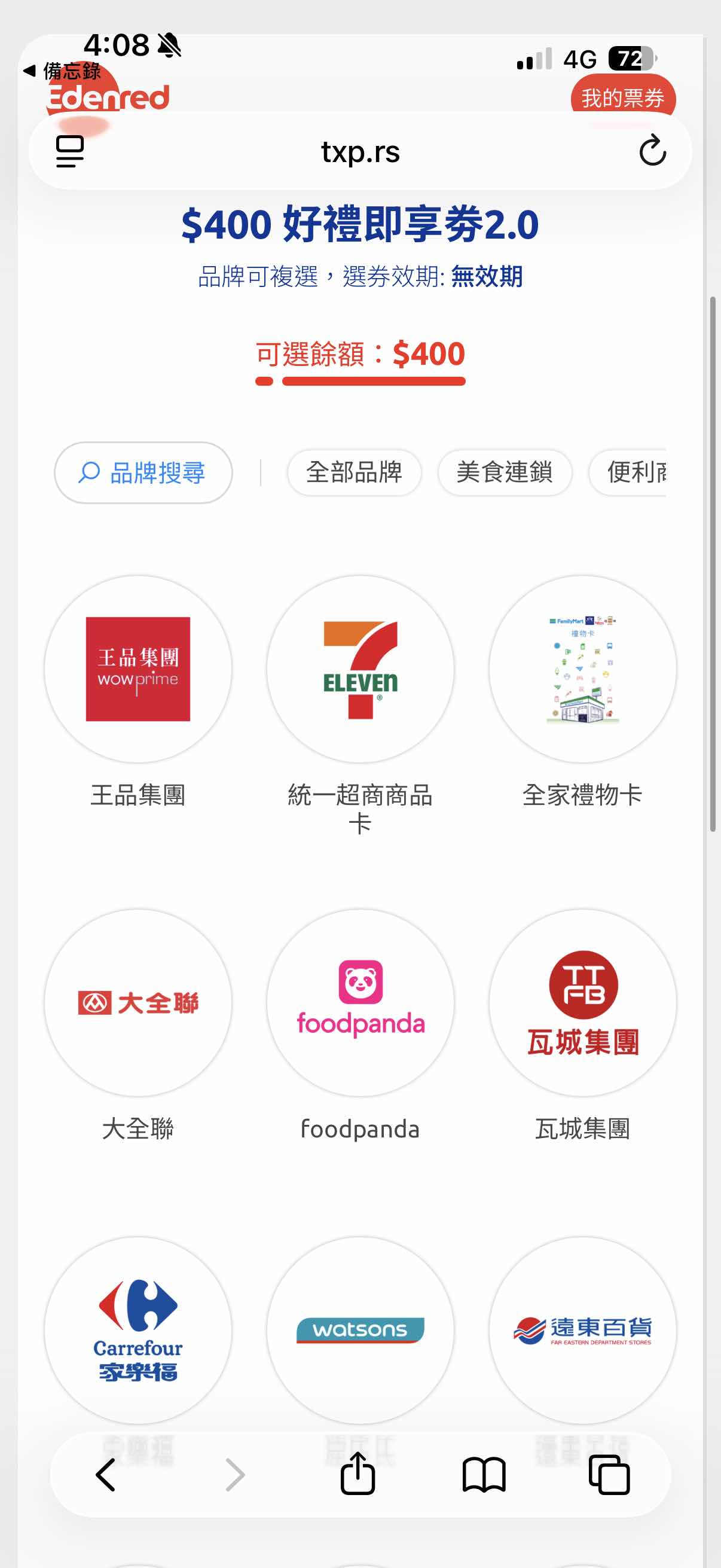 3.Edenred宜睿 福利即享券2.0 1200(一張)+400(一張)元 可自由搭配商家