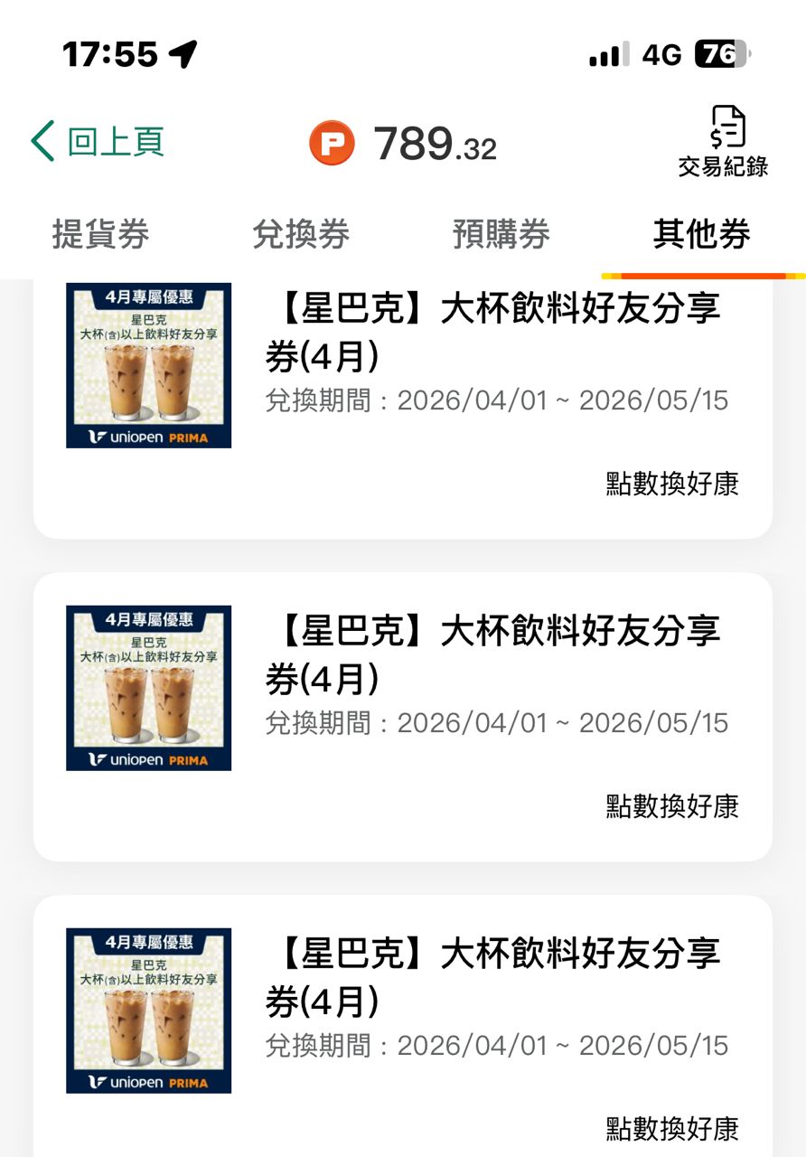 售 星巴克買一送一卷 期限5/15(有三張) 一張10op 先轉op ,後轉卷,謝謝