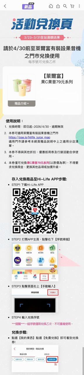 [交易] 萊爾富 果C果昔79元系列 兌換序號