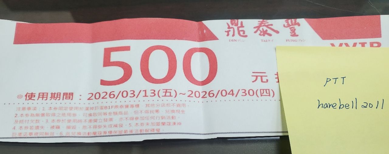 [交易] 高雄漢神巨蛋店-鼎泰豐500元抵用券