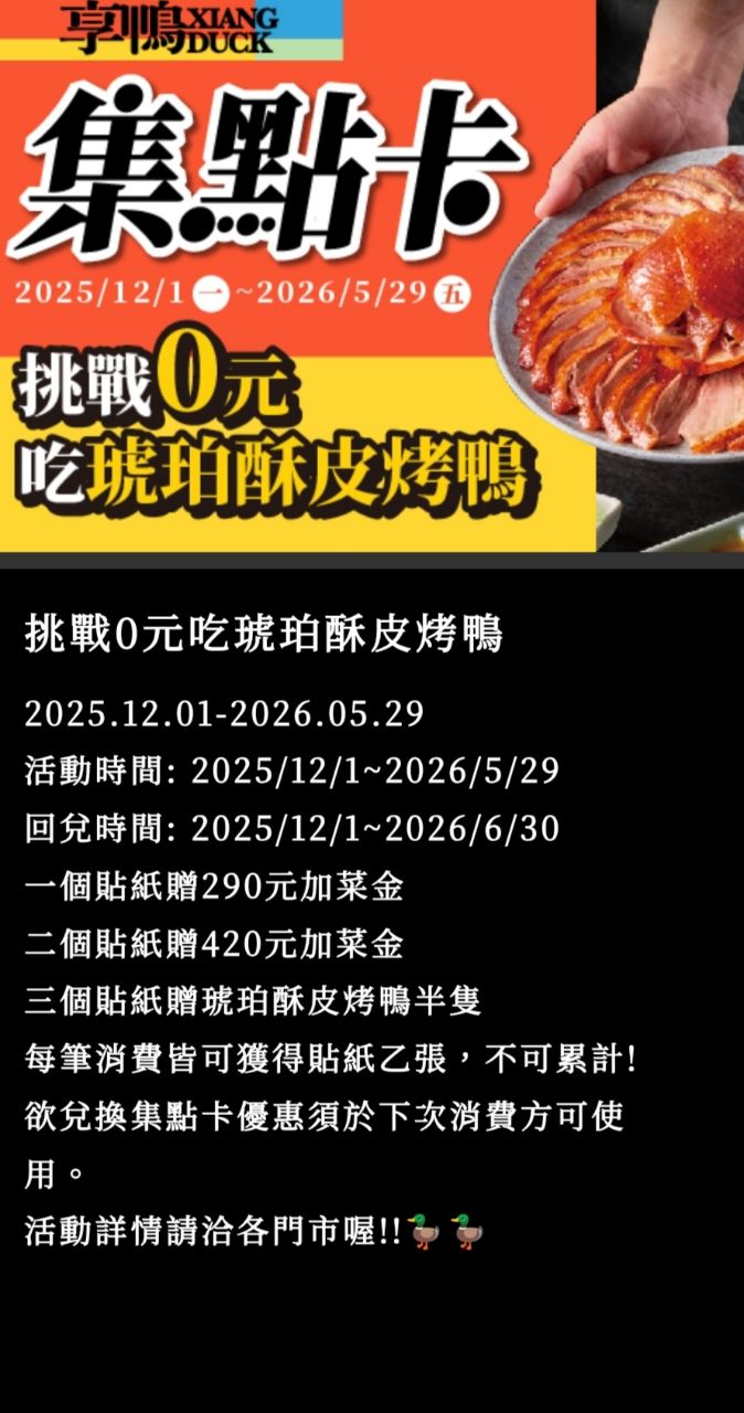 [交易] 享鴨集點卡(可免費換烤鴨半隻)
