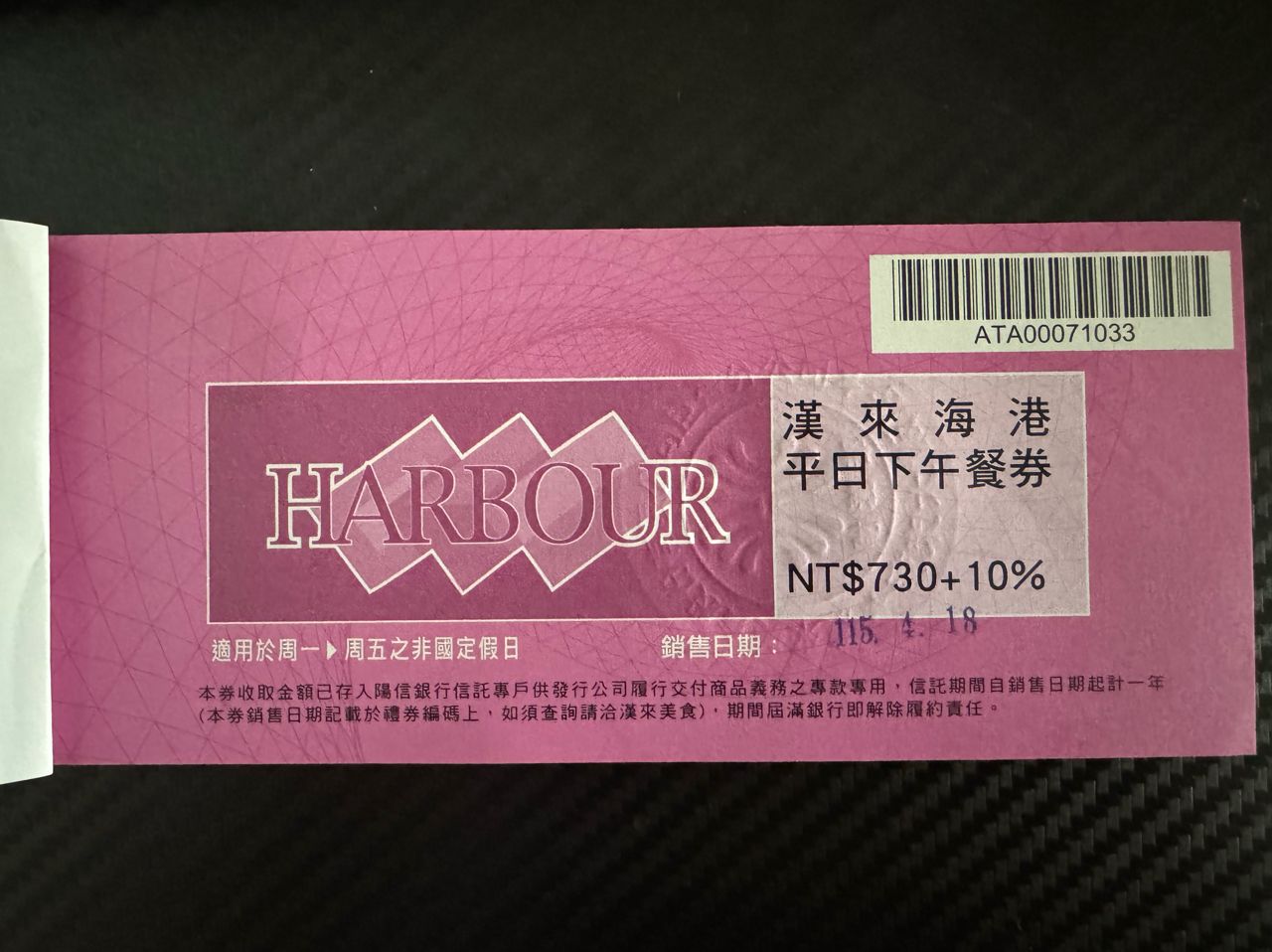 [交易] 漢來海港平日下午茶餐券