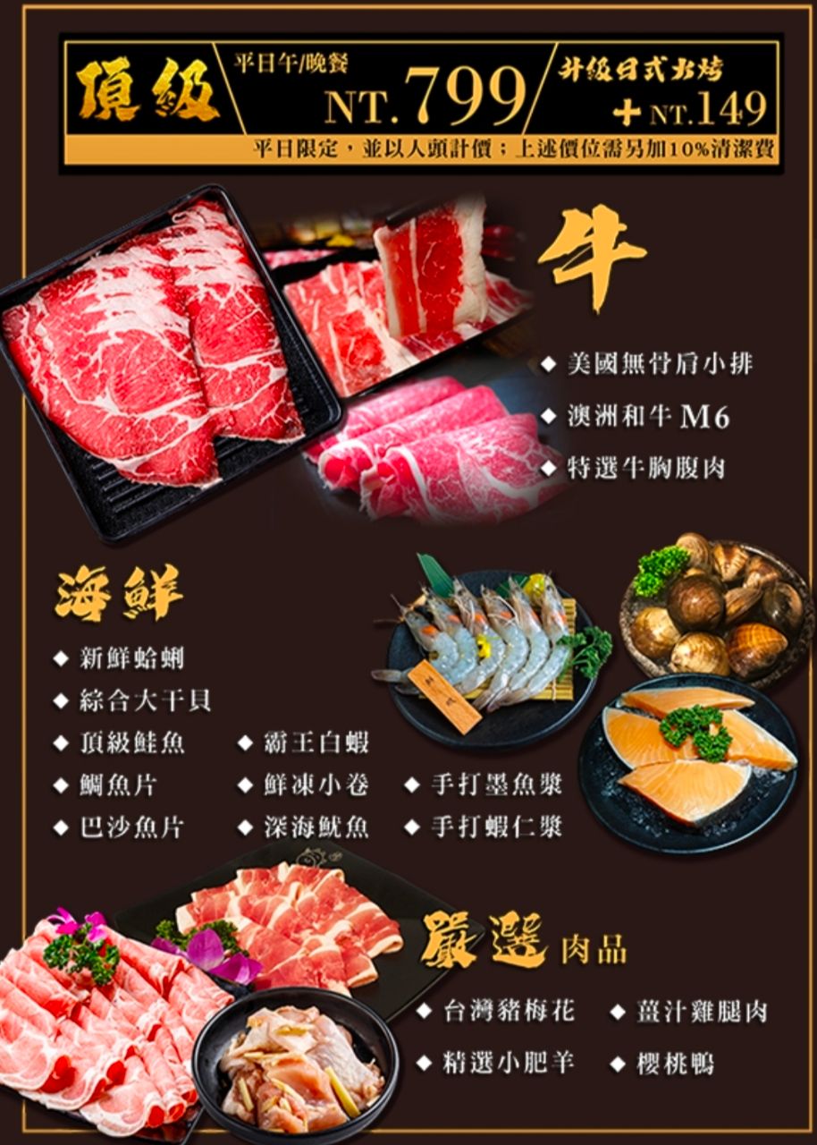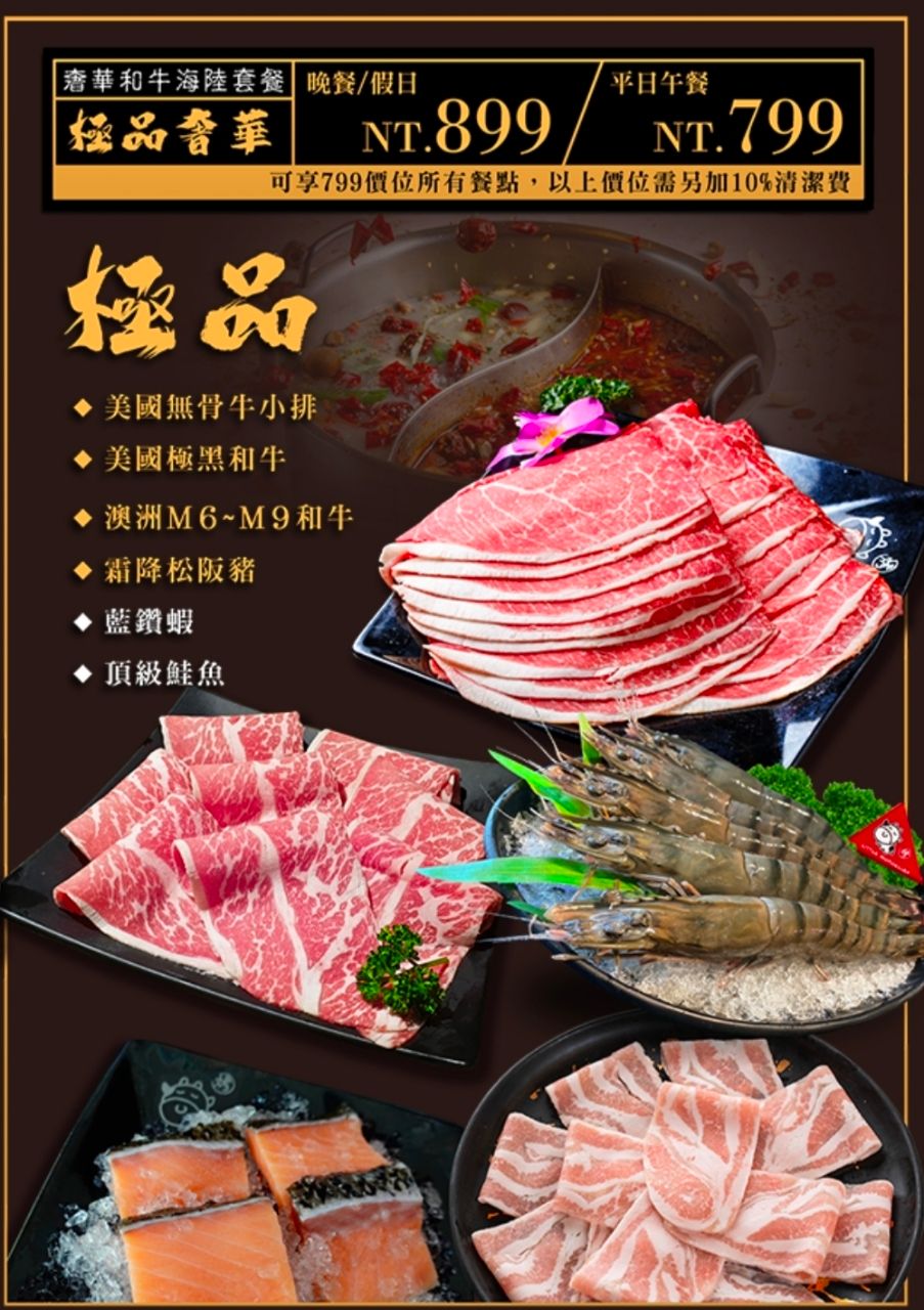 商品名稱:小蒙牛麻辣鍋奢華和牛海陸套餐(價位$799)平日用餐,兩人同行一人免費招