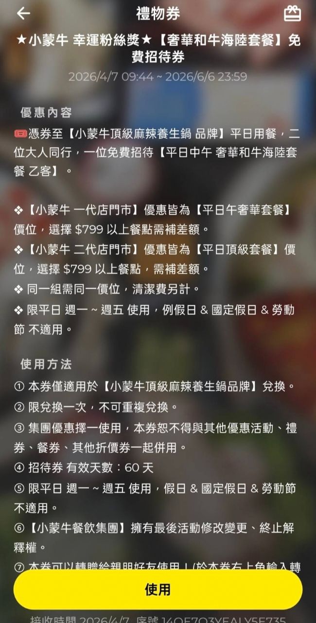 [交易] 小蒙牛奢華和牛海陸套餐招待券