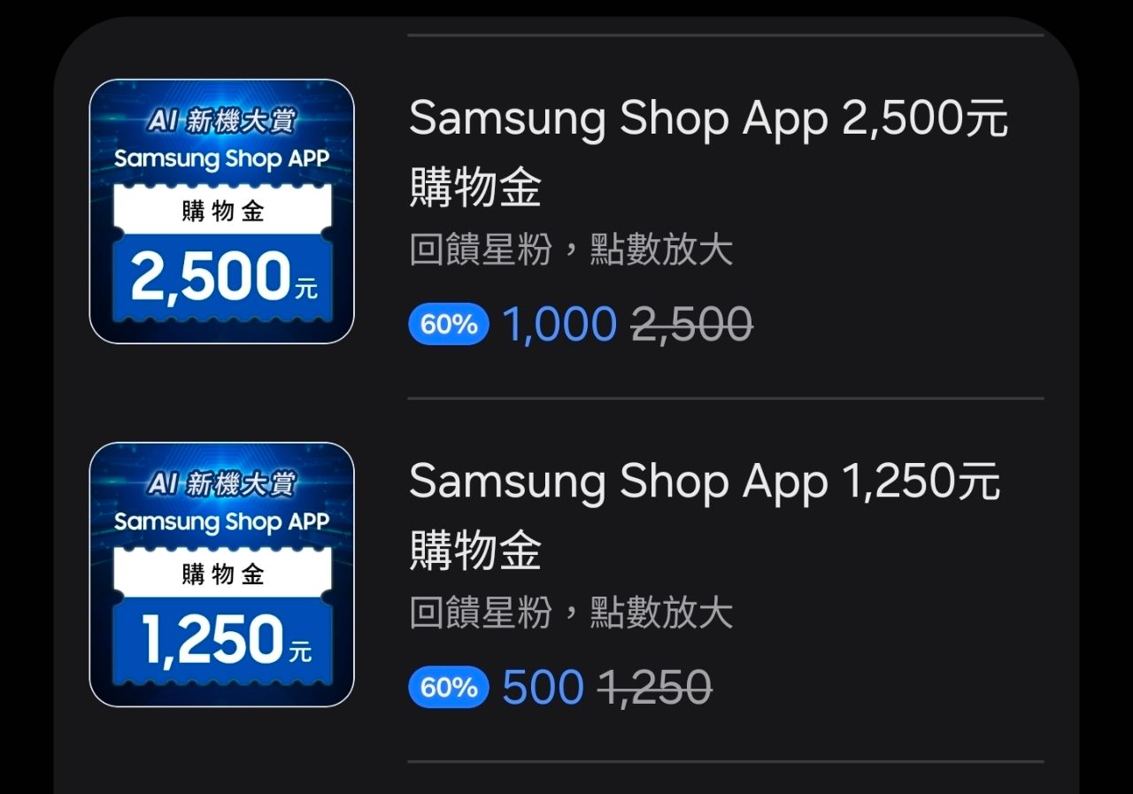 徵求項目: Samsung Rewards 購物金 2500/1250