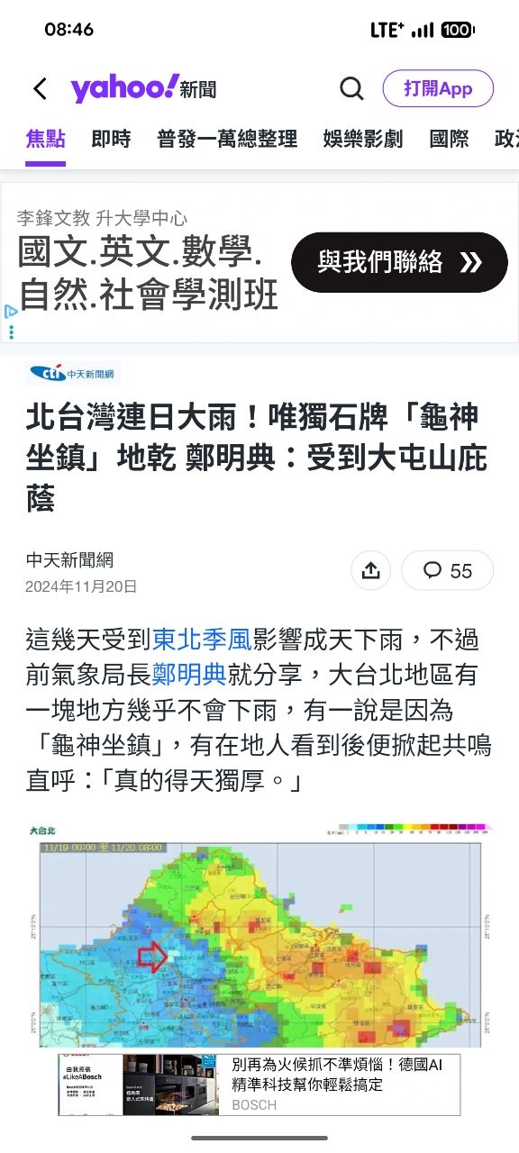 是西北台北比較好,西台北的中正區測站2024降雨日數是151