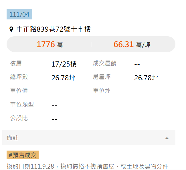 本物件兩年內上一筆實價登錄: (若有則不得併入前項)